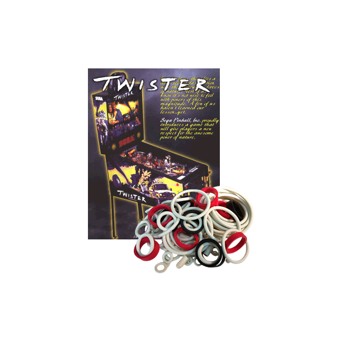 This is a 32 pieces rubber ring kit for your Twister. It includes all the O-rings, rubber sleeves, flipper rubbers and handy playfield rubber placement chart.